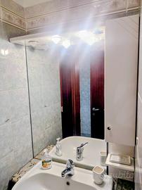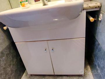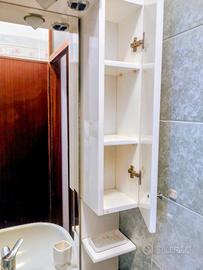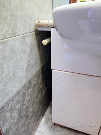Vendo mobile da bagno sospeso con specchio e pensile laterale a 3 ripiani portasapone sottostante 6 luci a cono 2 porta asciugamani estraibili e mobile contenitore da bagno a terra con lavabo integrato. Ritiro a Milano, stabile con montacarichi