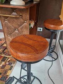 Vendo mobiletto bar vintage in legno, con rivestimento di pelle. Più i due sgabelli associati, con struttura metallica, due finti pedali come poggiapiedi e seduta in similpelle. Costi di spedizione a parte.