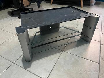 mobiletto basso in ferro con due ripiani in vetro e buchi dietro. Ritiro a mano Leccce
