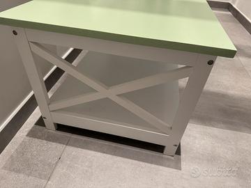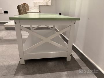 Mobiletto basso bianco e verde come da foto da utilizzare come si vuole come nuovo ha solo sulla parte superiore una puntina di pittura bianca sul verde come in foto ortime condizioni