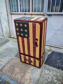 Mobiletto contenitore a colonna, realizzato in stile "baule da viaggio" vintage.