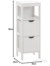 Giantex Mobile Bagno Stoccaggio a 3 Livelli, Colonna Bagno Cassettiera Armadio con Mensola Aperta e 2 Cassetti, Armadio su Piede per Soggiorno, Cucina, WC, 30 x 30 x 90 cm (Bianco).