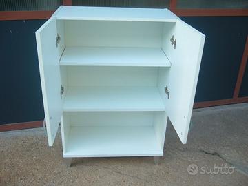 Mobiletto in legno laminato bianco con antine e ripiano a giorno, misura cm 63 di larghezza ,cm 95 di altezza e cm 33,5 di profondità.