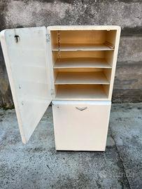 MOBILETTO BIANCO VINTAGE FATTEZZE SIMIL 'FRIGO ANNI '50' IN LEGNO BIANCO ALTEZZA: 114 CM LUNGHEZZA: 50 CM PROFONDITA': 35 CM