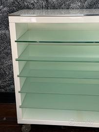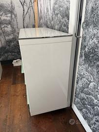 Vendesi mobiletto o cassettiera mobile bianco con rotelle e scaffali in vetro. Utilizzato in un salone. Prezzo 100 euro, trattabili. Per ogni info non esitate a chiedere qui sul sito o per telefono. Trasporto a cura dell'acquirente.