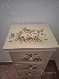 Piccolo mobile cassettiera shabby chic dipinto a mano.