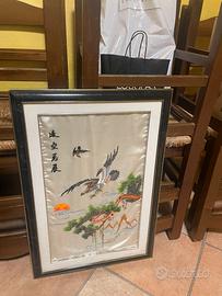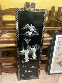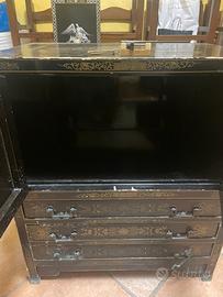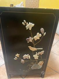 Splendido mobiletto, cinese, piccole imperfezioni da sistemare. Fine anni 70 In aggiunta quadro su seta cinese e un altro come il mobiletto in pannello di legno.