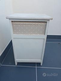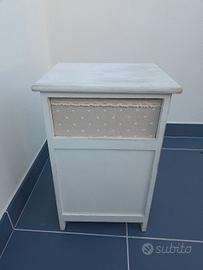 mobiletto shabby chic bianco con cassetto e anta decorata a cuore.