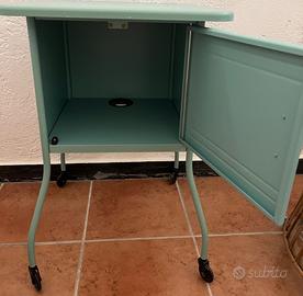 Mobiletto-comodino Ikea in metallo verde acqua. Con sportello e ruote. Ottime condizioni