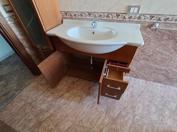 Mobiletto molto capiente per bagno, struttura monoblocco con lavabo integrale, tutto in ceramica, facile da pulire e manutenere (a differenza dei top in marmo dove si creano le macchie di acqua e altro, difficili poi da rimuovere).