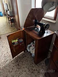 Mobiletto anni 60 con macchina da cucire PA.F. a scomparsa integrata. NON spedisco ma si trova vicino ad una porta fronte strada e si può ritirare facilmente . misura 55 cm di larghezza , 45 cm di profondità e 80 cm in altezza.