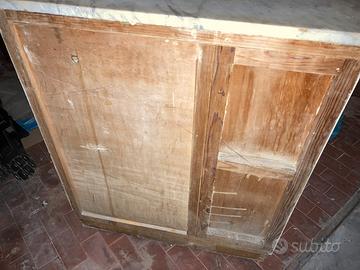 Delizioso mobiletto legno abete stondato con mensola e sportello originale piano in marmo bianco di carrara anni 60