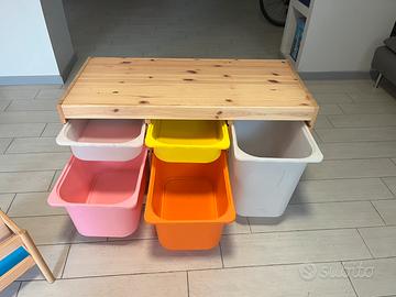 Mobiletto cn cassetti di plastica per giochi e piccola “ libreri”