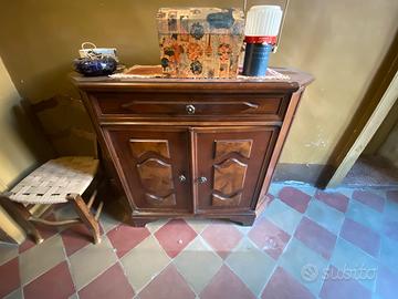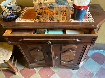 Piccolo mobiletto d’epoca in legno, dallo stile vintage-classico, composto da: