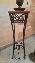 Mobiletto/colonnina decorativa in ferro battuto con piano in legno.