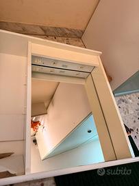 Vendo mobiletto bianco da bagno in perfette condizioni, con struttura bianca e ante a specchio.