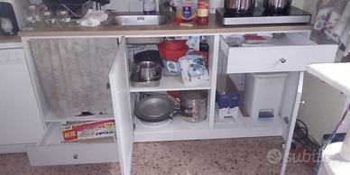 Vendiamo mobiletto da cucina, usato ma in buono stato, il mobiletto si può montare anche con le ante e i cassetti non necessariamente come in foto ed è compreso il lavandino con i tubi per lo scarico ma senza il miscelatore.