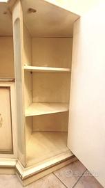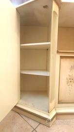 Mobiletto da ingresso, in legno, con decori stile veneziano. Composto da due ante laterali e due frontali, con ripiani interni. Altezza da terra cm 87 - Ripiano interno delle ante frontali (31x50 cm). Le altre dimensioni sono nelle foto.
