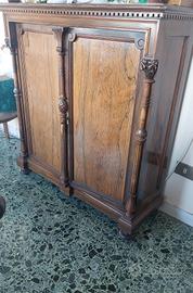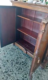 Mobiletto in legno massello lavorato, 4 ripiani, sportelli con chiave. Dimensioni: 100 X 34 X 120 circa. Leggero da trasportare. Zona Montesacro
