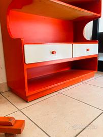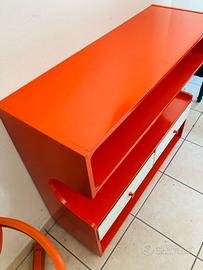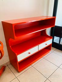 Mobiletto d’entrata o piccola libreria in arancione acceso, tipico degli anni ‘70. Design moderno che si fonde bene ovunque. Condizioni gradevoli con normali segni del tempo non evidenti particolarmente. Misura: 90x32x82