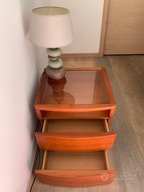 Vendo elegante mobiletto in finitura ciliegio, struttura solida in legno con piano superiore in vetro. Misure 50x50.