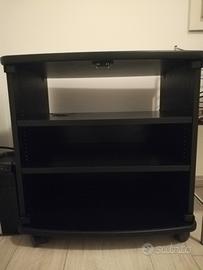 mobiletto rivestito in materiale plastico, simil formica (facile da pulire). Dotato di rotelle x lo spostamento. Colore nero. 2 ripiani.