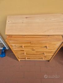 vendo mobiletto ikea 3 cassetti in legno naturale completo di una mensola con staffe sempre in legno misure del mobile 62x30x70h. buono stato