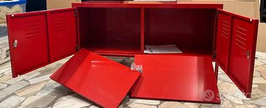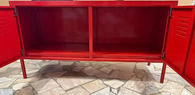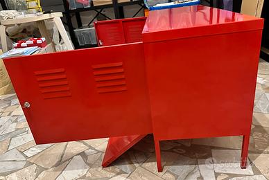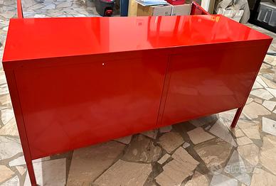Mobile contenitore Ikea PS in metallo rosso. Design moderno e funzionale. - Due ante con chiusura a chiave. - Finitura lucida.