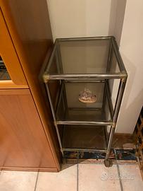 Mobiletto in acciaio e vetro con rotelle alla base