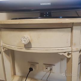 Mobiletto in legno arte povera, bianco/panna H80cm, lunghezza 82cm, larghezza 40cm. Usato come porta televisione ma può essere comodamente utilizzato in varie forme di arredamento.