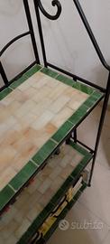 Mobiletto in ferro battuto con ripiani inclinabili, con finiture in ceramica sui ripiani. misure. h cm 125 larghezza cm 62 prof cm30.per info 3534686384 francesco.