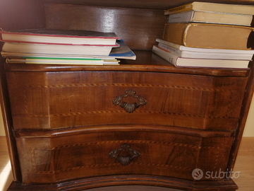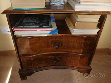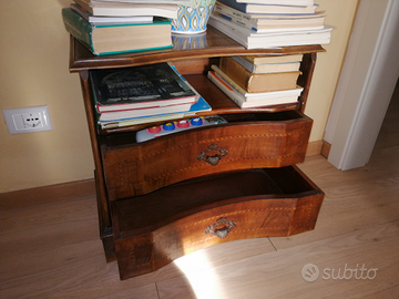 Vendo bel mobiletto in legno antico con intarsi e cassetti, misure : altezza 56 cm, larghezza 58 cm, profondità 31,5 cm.