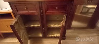 Mobiletto in legno con due sportelli e due cassetti da utilizzare in corridoio o bagno per asciugamani, porta tv, lavanderia, o per qualsiasi altro utilizzo.