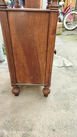 mobiletto in legno con ripiano in marmo. sportello con ripiano centrale e cassetto. misure in foto possibilità di visionare senza impegno. necessitavdi piccoli restauri.