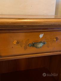 Vendo mobiletto d’epoca in legno, con anta, cassetto superiore e ripiani interni, impreziosito da decorazioni floreali dipinte e maniglieria originale.