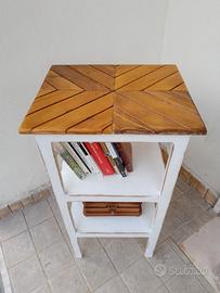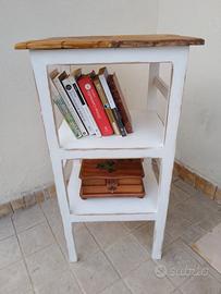 mobiletto in legno massello artigianale decape' 3 ripiani per bagno, ho piccala libreria,e altri usi,piano color legno e panna misure: altezza 87 cm lati 40x36. ritiro a Castelnuovo Vomano provincia Teramo Abruzzo