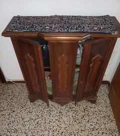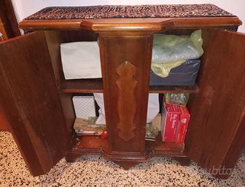 Mobiletto in legno di ciliegio a due ante ornate. Leggero difetto come da foto. 80x25cm, h 83 cm circa. Venezia storica. Accesso fondamenta.