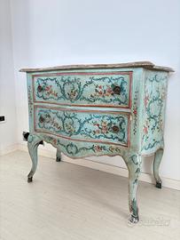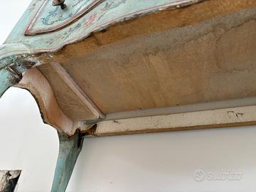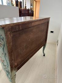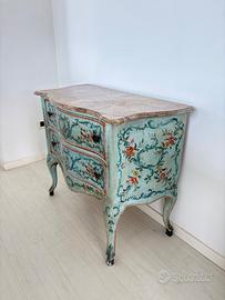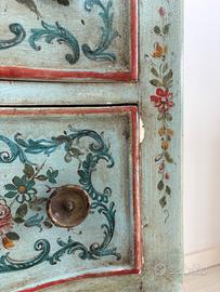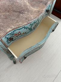 Mobiletto in legno dipinto con decoro metà '900, marmorizzazione del piano superiore. Numero cassetti: 2.