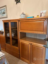 Vendo mobile in legno stile classico, composto da più moduli con ante e vetrinette. Struttura solida e ben tenuta, ideale per soggiorno o sala da pranzo.