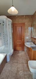 Vendo mobiletto in legno massello abbinato con grande specchio con illuminazione, piano in granito, lavabo e rubinetto fattini, ottime condizioni, lungo 141 cm, largo 35 cm.