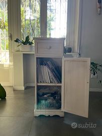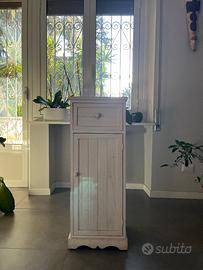 Causa trasloco, vendo mobiletto in legno stile shabby chic, colore bianco. Misure: larghezza 35 x altezza 91 x profondità 33. Con un cassetto e con un’anta con un ripiano.