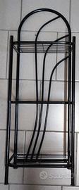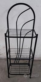 Vendo mobiletto in metallo nero molto carino e resistente, con 3 ripiani comodi per appoggiare materiale di vario tipo, dalle riviste e libri a oggetti da collezione. È un complemento d'arredo versatile che può adattarsi a qualsiasi ambiente della casa.