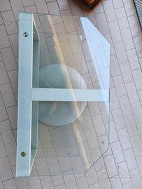 Come nuovo. Rotante su base. 3 ripiani vetro misure: larghezza 94cm profondità 55 (+5 della base, vedi foto dall'alto) altezza 48. Comparto passacavi sul retro. Solo ritiro a Monza