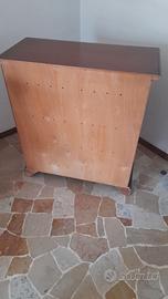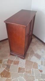 Mobiletto in noce a due ante e quattro ripiani. Dimensioni cm. 38x73x86