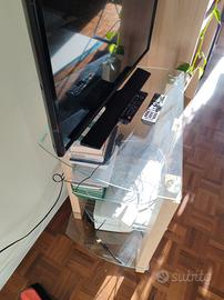 Mobiletto in vetro e legno, buone condizioni ma sul ripiano superiore occorre mettere della colla. Ritiro a mano a San Fermo della Battaglia