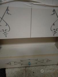 Mobiletto in legno con pomelli e decorazione in vetro. Si vende per cambio arredamento.