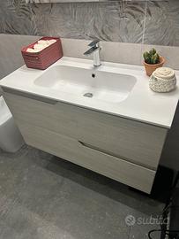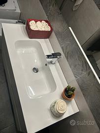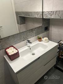 Vendo nuovissimo mobiletto lavabo bagno compreso di specchio Il mobiletto è largo 100cm,alto 56cm e profondo 45 cm Causa trasloco Praticamente utilizzato pochissimo non ha alcun segno di usura o difetta Ampi cassetti contenitori Montaggio e trasporto a carico dell’acquirente