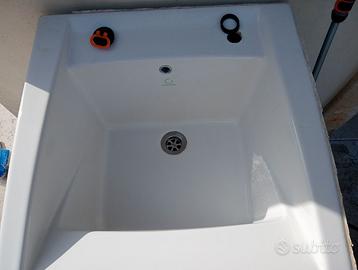 Vendo lavabo con foro sulla destra per rubinetto, con mobile integrato appena un po' scentrato per cambio lavanderia. No spedizione