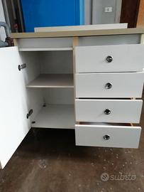 Mobile con anta e 4 cassetti, ben tenuto, ideale per lavanderia o ripostiglio, misure: h 86xprof 48x 80 larghezza. I cassetti hanno prof. 34, il ripiano prof. 39 larghezza 37. Non spedisco