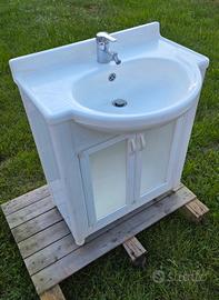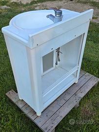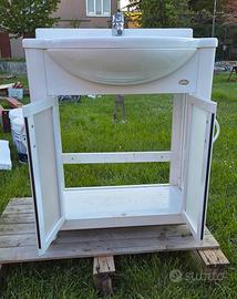 Mobiletto in plastica con lavandino in resina completo di miscelatore Grohe in ottone cromato. Arredo usato ma in buono stato, pronto all'uso , completo di flessibili per l'allaccio all'impianto. il lavabo si trova a Dese provincia di Venezia Si tratta di un mobile non scomponibile ma leggero e facile da caricare anche in auto, ottimo per lavanderie garage o per utilizzo provvisorio.